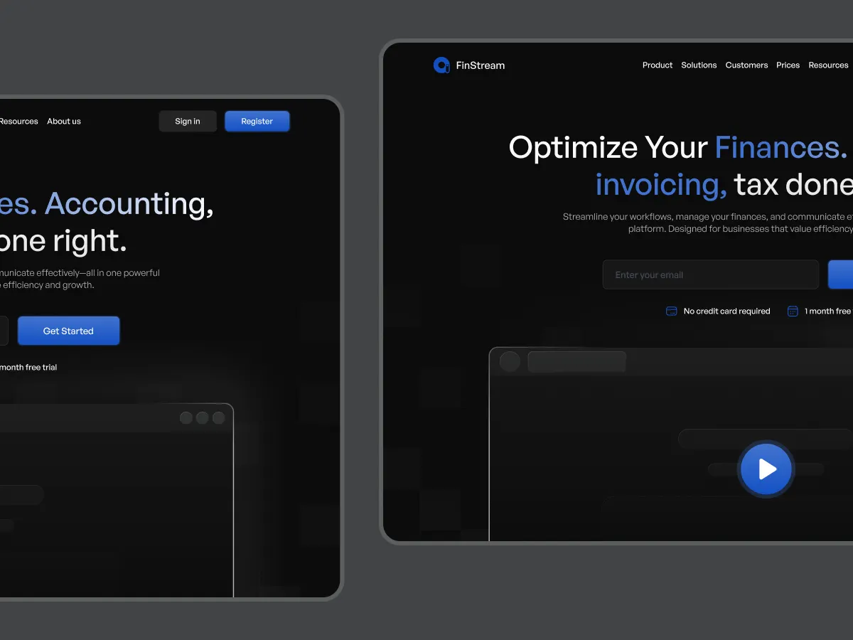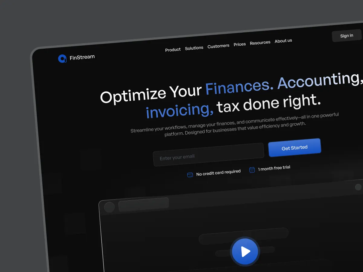 The design is centered around helping businesses streamline their workflows, manage finances, handle accounting, invoicing, and taxes—all within one intuitive platform.